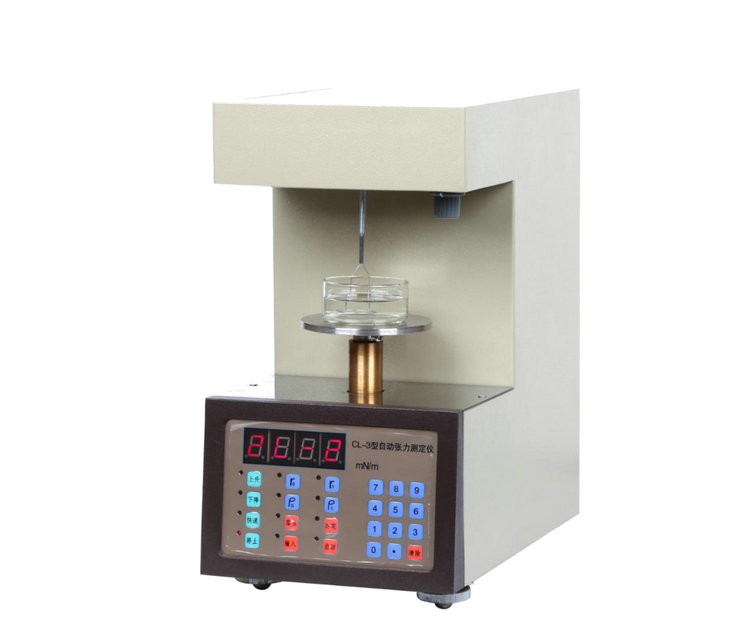 仪器符合GB/T6541的标准,采用圆环法在非平衡的条件下测量各种液体表面张力(液—气相界面)及矿物油与水的界面张力(液—液相界面)。该仪器采用了微处理技术,自动化程度高、操作简便、工作可靠。被测样品注入杯后,只要按动启动键,仪器便可自动完成对试样的测量,并能自动根据输入的具体参数计算出被测试样的张力值。